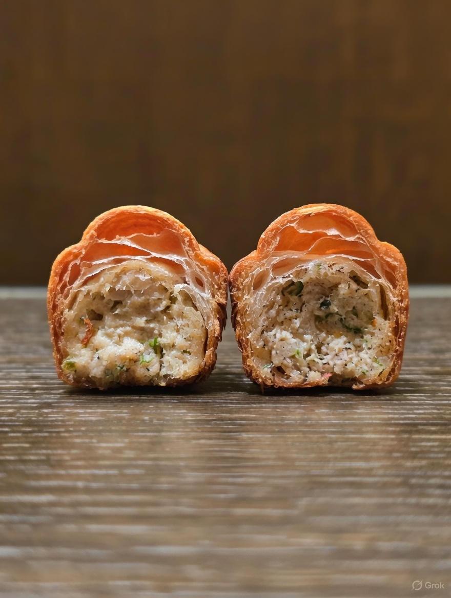 Crafted from rich croissant dough shimmered with edible gold dust, each ultra-flaky treasure features a zesty Salmon Pate filling for a deep rich elegance.