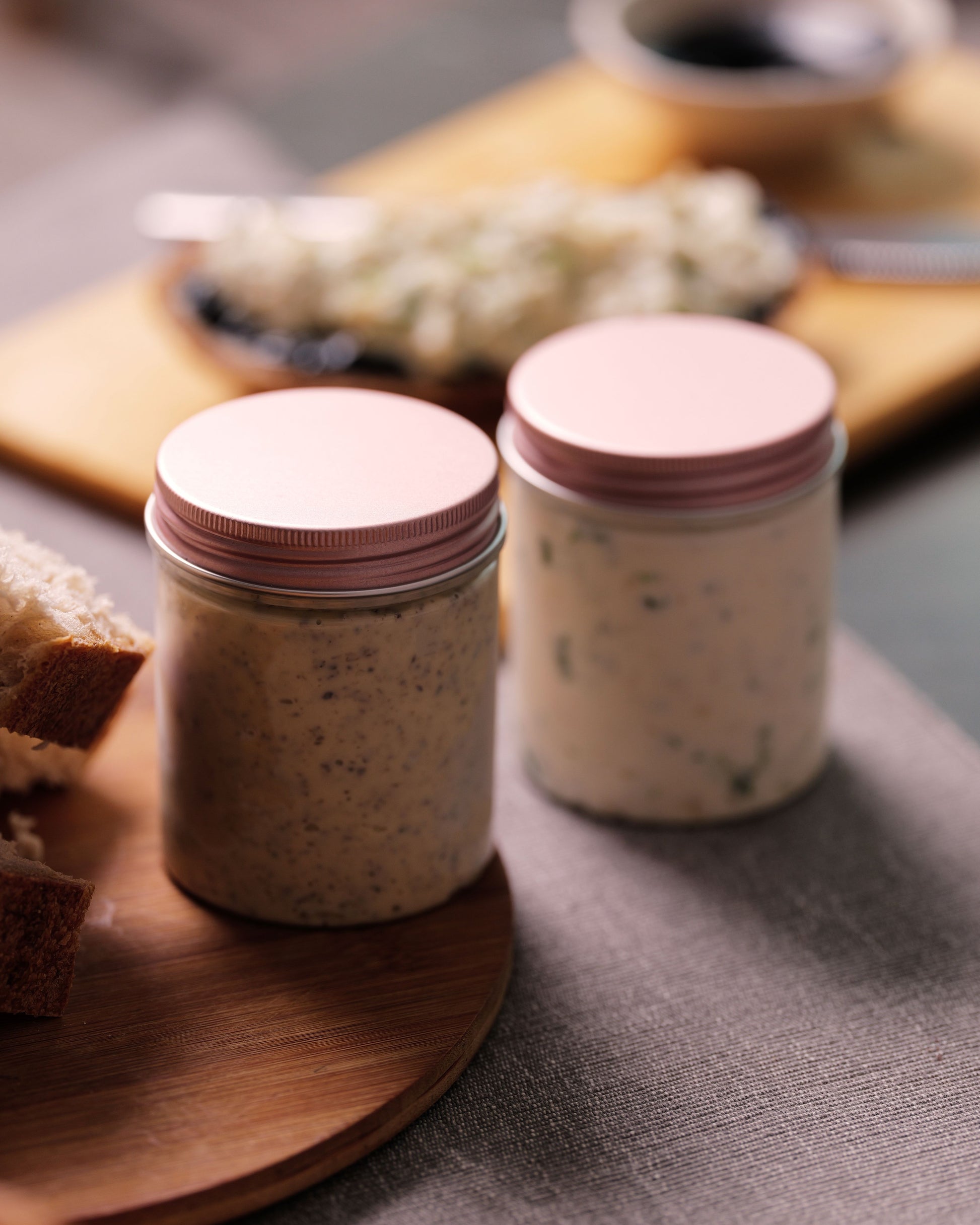 Delightful jar of house-whipped lactic butter infused with a truffle and mushroom paste for a delightful pairing with our Country Loaf! (180g)