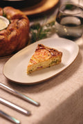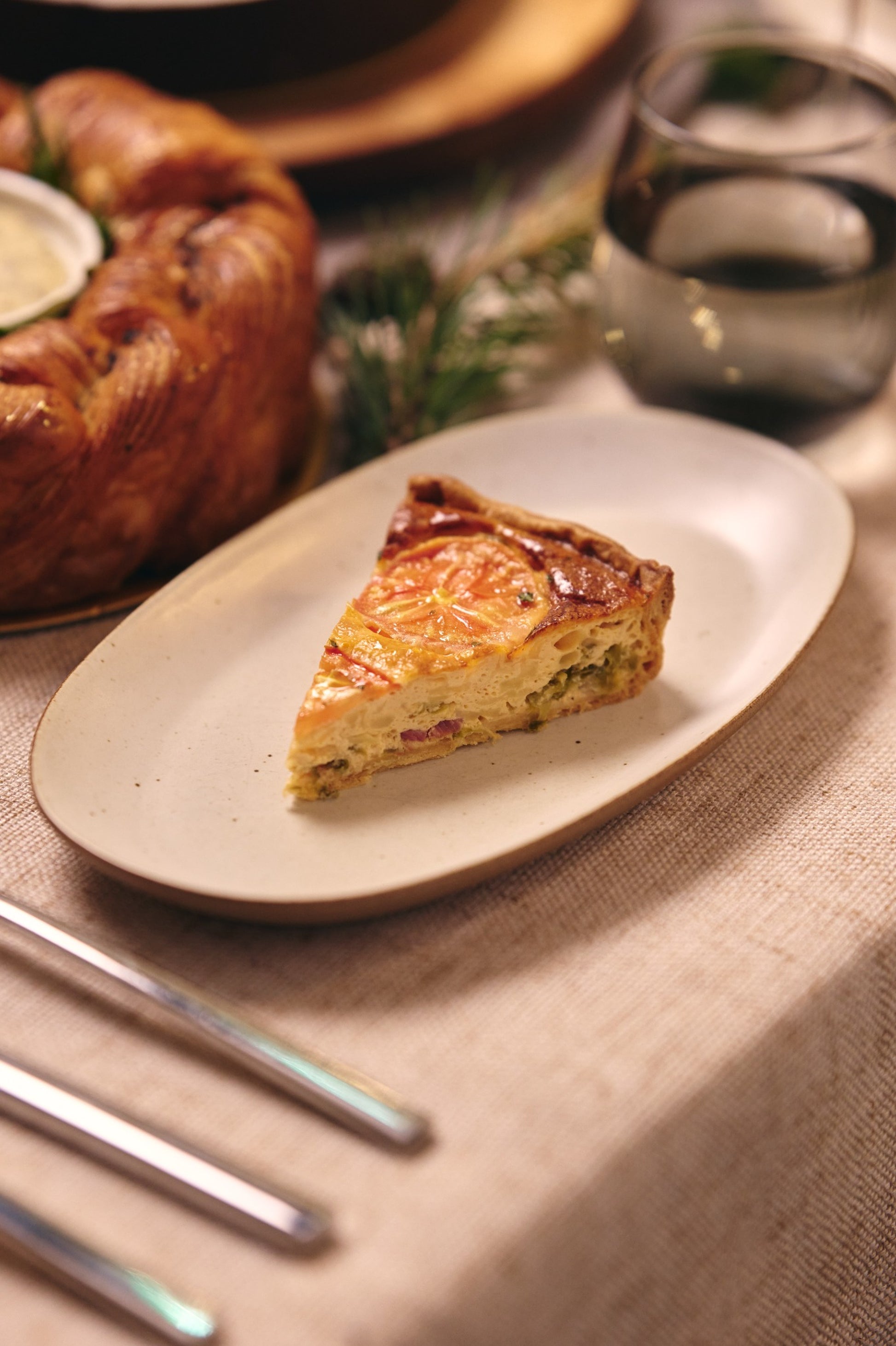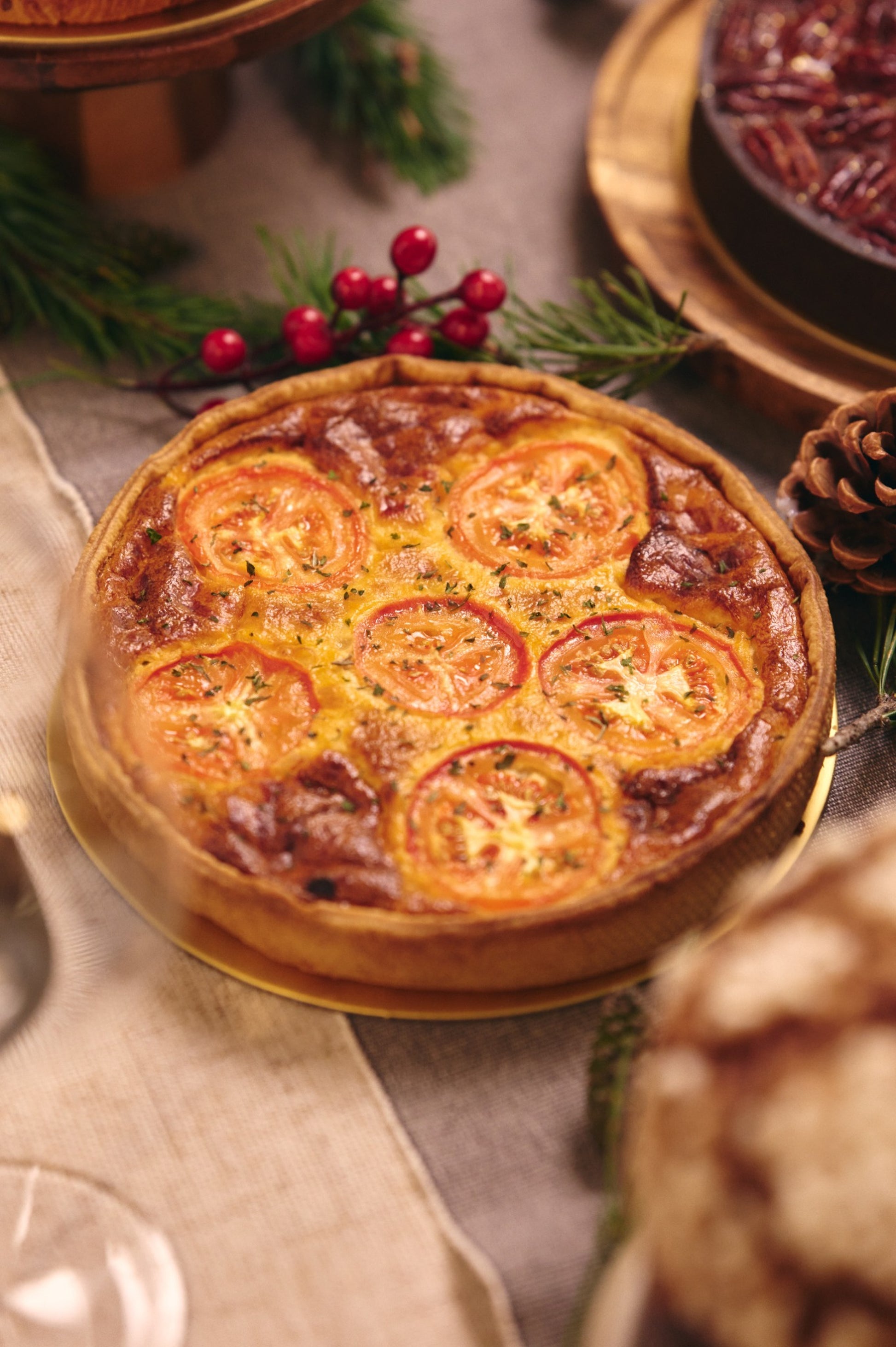 Indulge in our reimagined Quiche Lorraine, crafted with halal-certified turkey bacon for a leaner yet deeply satisfying experience. This 8-inch masterpiece layers tender leeks and crispy bacon within a silky egg custard enriched with tomato paste, delivering complex umami notes that elevate the classic. Crowned with fresh tomatoes and melted cheese, each slice offers a harmonious balance of richness and brightness—addictively moreish without overwhelming the palate.